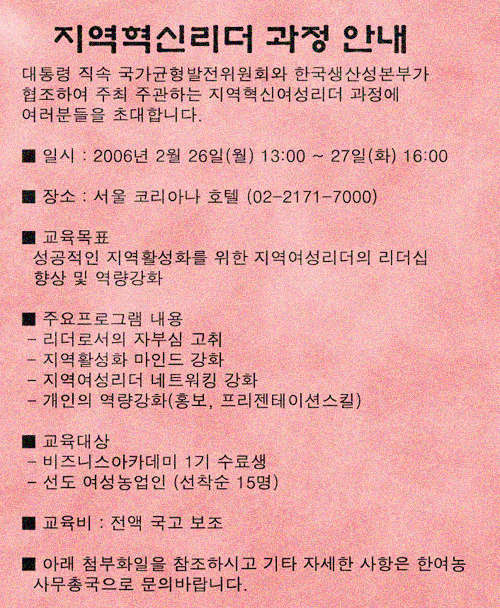Áö¿ªÇõ½Å¿©¼º¸®´õ°úÁ¤ ¾È³»
