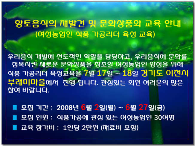 ¿©¼º³ó¾÷ÀÎ ½Äǰ °¡°ø¸®´õ À°¼º ±³À° ¾È³»