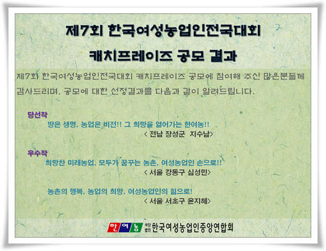 Á¦7ȸ Çѱ¹¿©¼º³ó¾÷ÀÎÀü±¹´ëȸ ijġÇÁ·¹ÀÌÁî °ø¸ð°á°ú