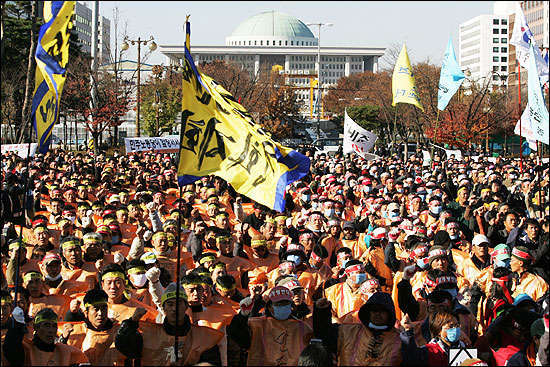 ¿©Àǵµ¿¡ Áý°áÇÑ ³ó¹Îµé Áýȸ Àå¼Ò¿¡ Â÷·ÁÁø °í Á¤¿ëǰ¾¾ ºó¼Ò. »çÁøÃâó : ¹ÎÁßÀÇ ¼Ò¸®