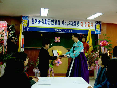 À̳¯ ÇÑ¿©³óÁß¾Ó¿¬ÇÕȸ ¿ìÁ¤±Ô ȸÀåÀº °È 4´ëȸÀåÀ¸·Î¼ Çå½ÅÀûÀÌ¸ç ¿Á¤ÀûÀΠȰµ¿À¸·Î °ÈƯ±¤¿ª¿¬ÇÕȸÀÇ ¹ßÀü°ú ¼ºÀåÀ» À̲ö ¹Ú¹Ì¼ø ȸÀå¿¡°Ô ÀçÁ÷±â³äÆÐ¸¦ Àü´ÞÇÏ¿´´Ù.