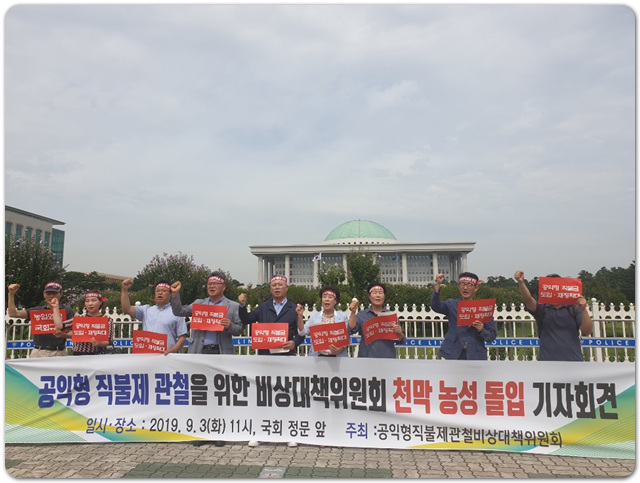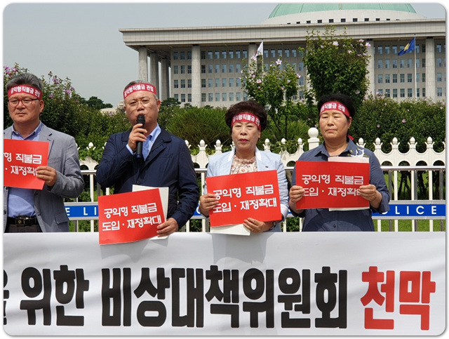 °øÀÍÇü Á÷ºÒ±Ý °üöÀ» À§ÇÑ ºñ»ó´ëÃ¥À§¿øÈ¸ õ¸· ³ó¼º µ¹ÀÔ ±âÀÚȸ°ß ¡á ÀϽÃ: 2019³â 9¿ù 3ÀÏ(È) 11:00~ ¡á Àå¼Ò: ±¹È¸ Á¤¹® ¾Õ ¡á ÁÖÃÖ: °øÀÍÇüÁ÷ºÒ±Ý°üöºñ»ó´ëÃ¥À§¿øÈ¸