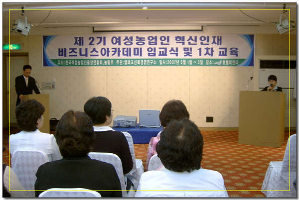 ¿©¼º³ó¾÷ÀÎ Çõ½ÅÀÎÀç ºñÁî´Ï½º ¾ÆÄ«µ¥¹Ì ÀÔ±³½Ä ¹× 1Â÷±³À° ÀÏ ÀÚ : 2007³â 5¿ù 1ÀÏ ~ 5¿ù 3ÀÏ Àå ¼Ò : °æ±â ÀÌõ È£ÅÚ ¹Ì¶õ´Ù