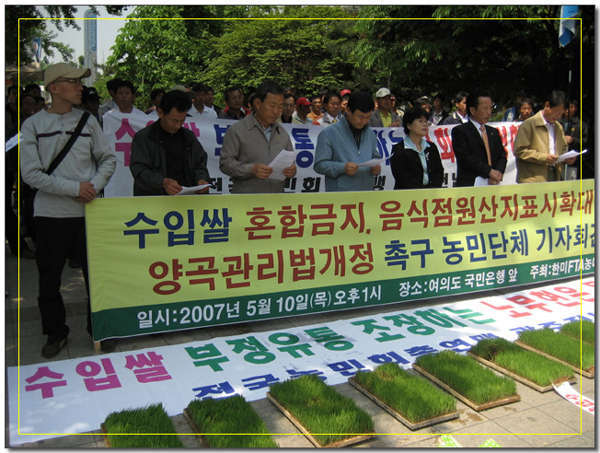 ¼öÀÔ½Ò È¥ÇÕ±ÝÁö À½½ÄÁ¡¿ø»êÁö Ç¥½Ã È®´ë ³ó¹Î´Üü ±âÀÚȸ°ß ÀÏ ½Ã : 2007³â 5¿ù 10ÀÏ 13:00 Àå ¼Ò : ¿©Àǵµ ±¹¹ÎÀºÇà ¾Õ