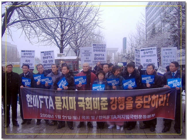 ÇѹÌFTA ¡°¹¯Áö¸¶ ±¹È¸ºñÁØ¡± °ÇàÁß´Ü ±âÀÚȸ°ß ÀÏ ½Ã : 2008³â 1¿ù 21ÀÏ(¿ù) 10:30 Àå ¼Ò : ¿©Àǵµ ±¹¹ÎÀºÇà ¾Õ