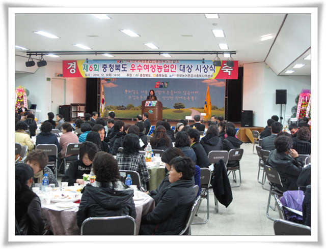 Á¦6ȸ ÃæÃ»ºÏµµ ¿ì¼ö¿©¼º³ó¾÷ÀÎ ´ë»ó ½Ã»ó½Ä ¡á ÀÏ ½Ã : 2010³â 12¿ù 9ÀÏ(¸ñ) 14:00 ~ ¡á Àå ¼Ò : ÃæºÏ³ó¾÷ÀÎȸ°ü 3Ãþ °´ç